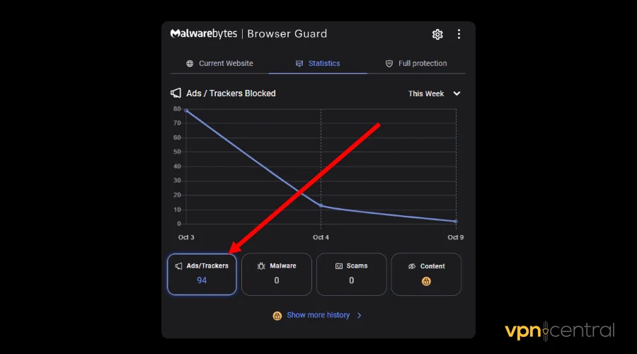 This is a free browser extension designed to enhance online security. It uses Malwarebytes’ antivirus engine to block malware, viruses, trackers, and others.