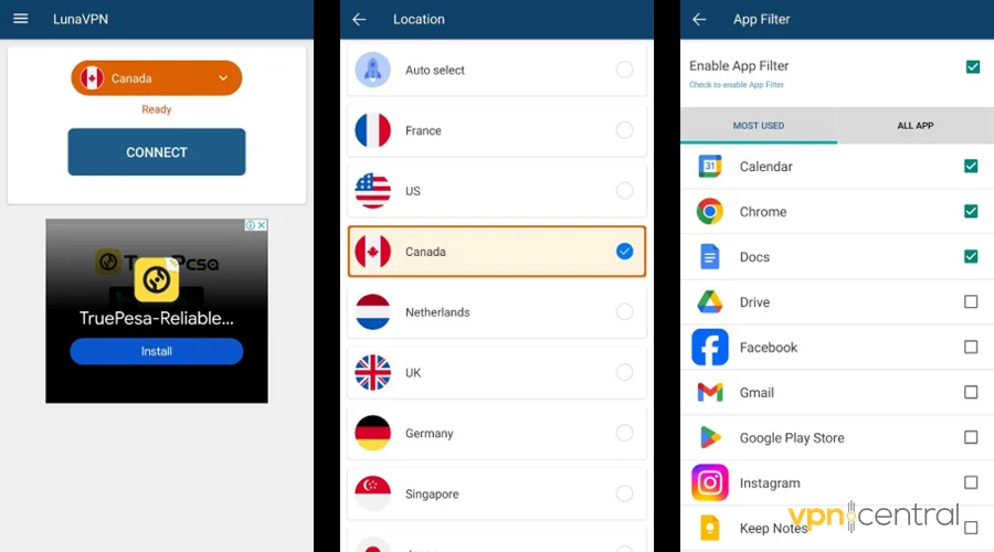 • Lightweight app: The Luna VPN app is lightweight. It’s about 20 MB and can run decently even on phones with limited resources.