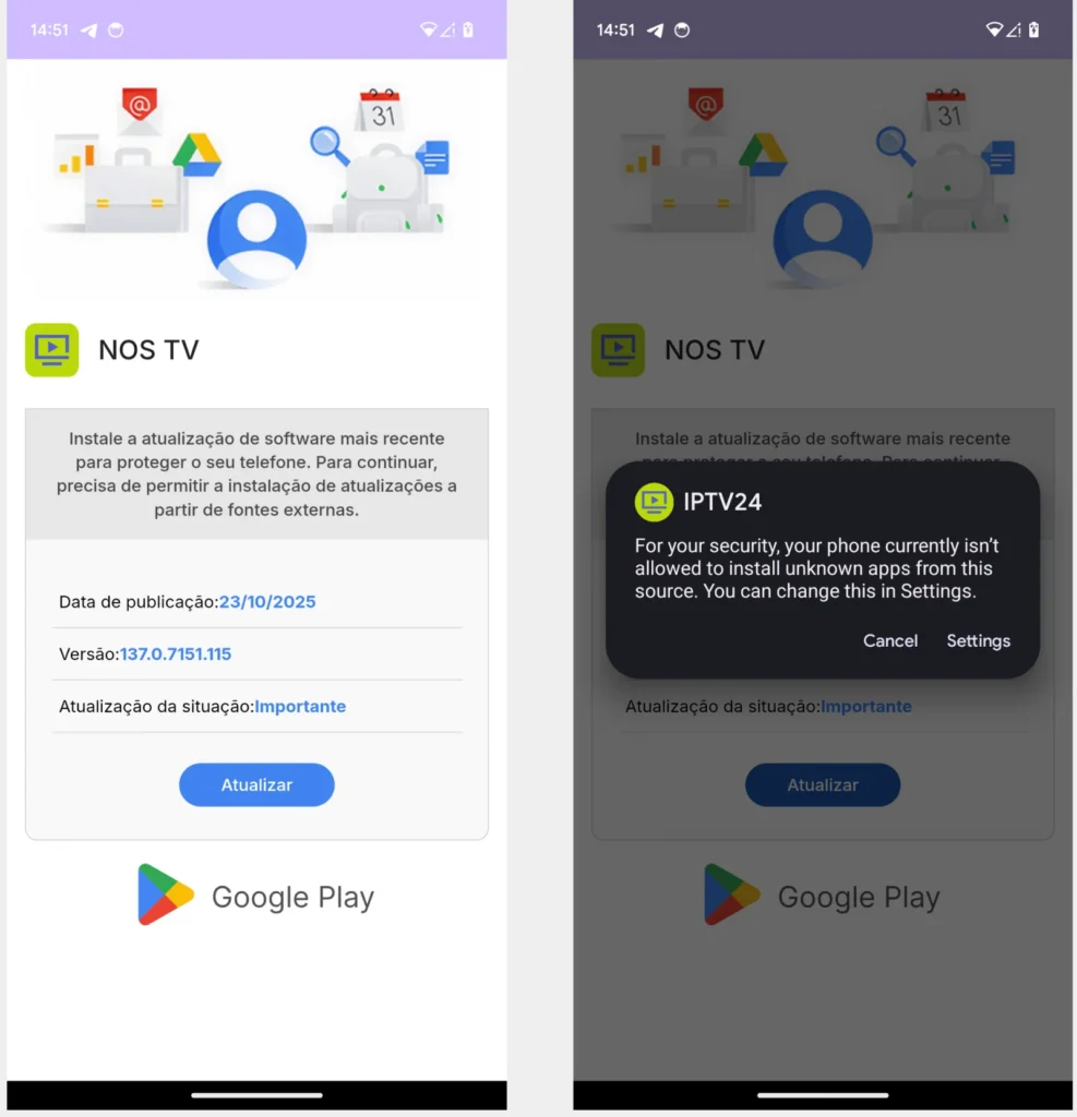 - Lure: IPTV APK from Telegram/social media.