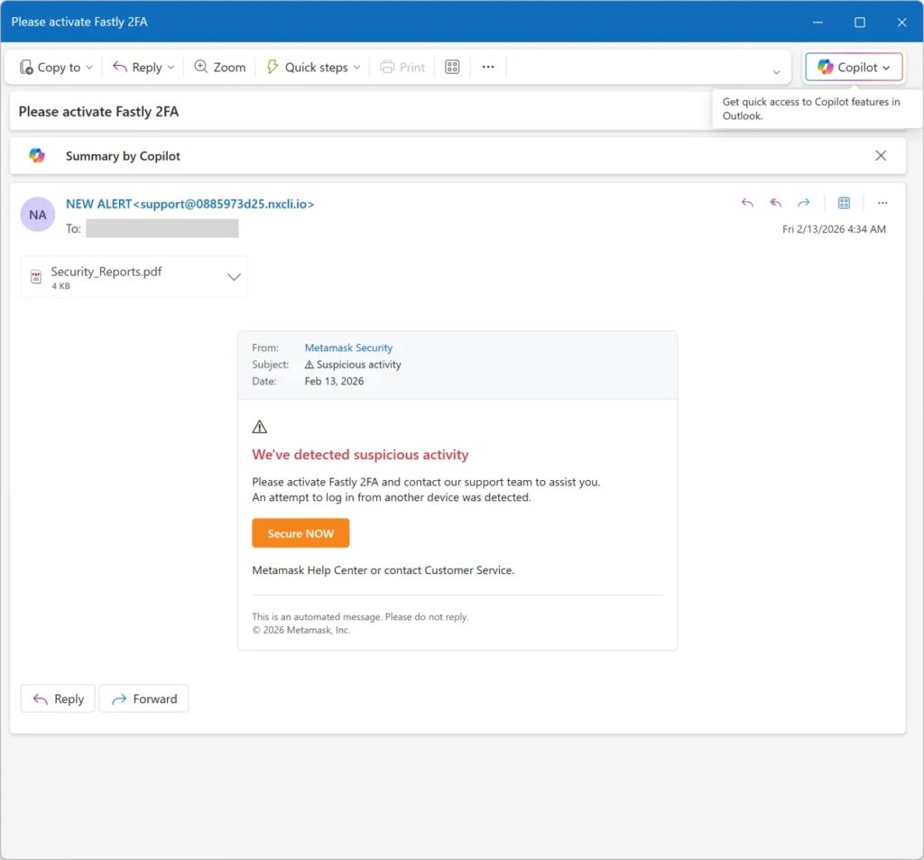 MetaMask Phishing Emails Use Fake Security Reports to Steal Wallets
