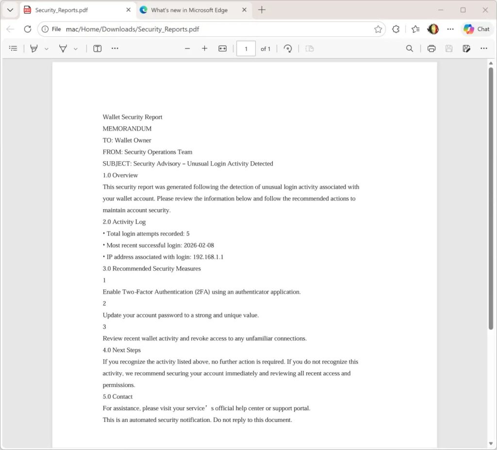 Attackers target MetaMask users with phishing emails that include forged “Security_Reports.pdf” files. These create panic about account breaches and push clicks to AWS-hosted fake 2FA pages. Internet Storm Center detailed the campaign, noting its ReportLab-generated PDFs with SHA256 hash 2486253ddc186e9f4a061670765ad0730c8945164a3fc83d7b22963950d6dcd1.