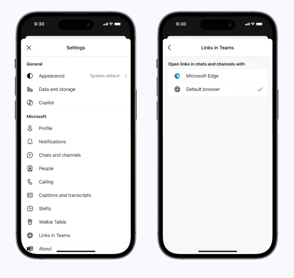 | TeamsMobilityPolicy | LinksInTeams | UseSystemDefaults | System default browser, no prompt |