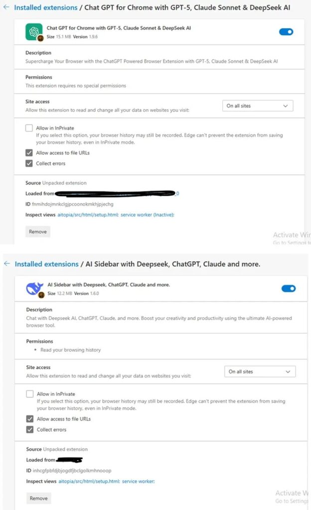 The malicious extensions appeared to be legitimate AI productivity tools designed to improve interactions with AI platforms. Researchers say the attackers copied branding, interface layouts, and permission prompts from a legitimate extension known as AITOPIA.
