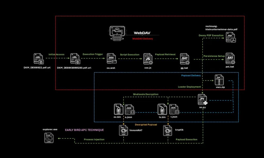 Your sample article correctly covered the main elements of the campaign, including the disguised .url file, TryCloudflare delivery, WebDAV hosting, VenomRAT and Kryptik payloads, and the Early Bird APC injection method.