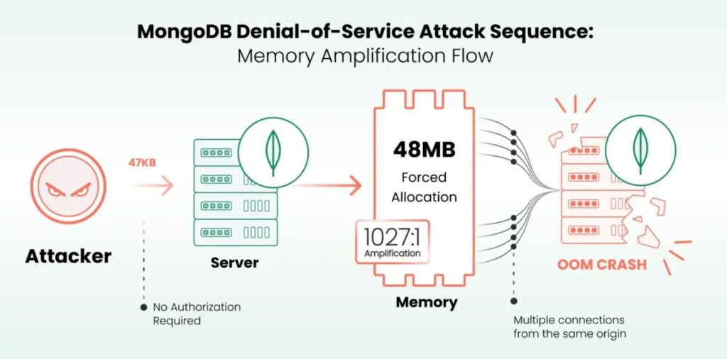 A newly documented MongoDB denial-of-service flaw, CVE-2026-25611, can let an unauthenticated attacker exhaust server memory and crash a MongoDB instance by sending specially crafted messages over the network. The NVD description states that crafted unauthenticated messages can exhaust available memory and crash MongoDB.