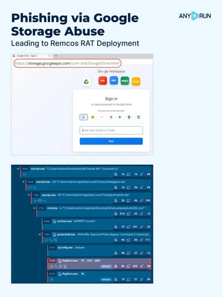 A newly documented phishing campaign is using Google Cloud Storage links to help deliver Remcos RAT, a remote access trojan that gives attackers long-term control over infected Windows systems. The main trick is simple: the lure starts on a trusted Google-owned domain, which can make the link look safer to users and sometimes harder for basic filters to flag.