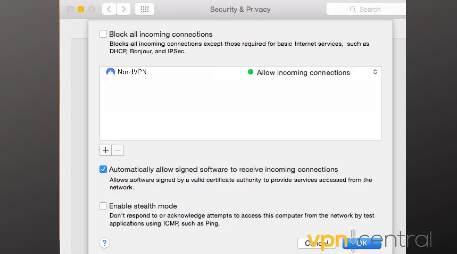 If NordVPN is connected but there’s no network on your Mac, do the following: