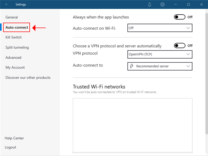 - Go to settings and select Auto-connect