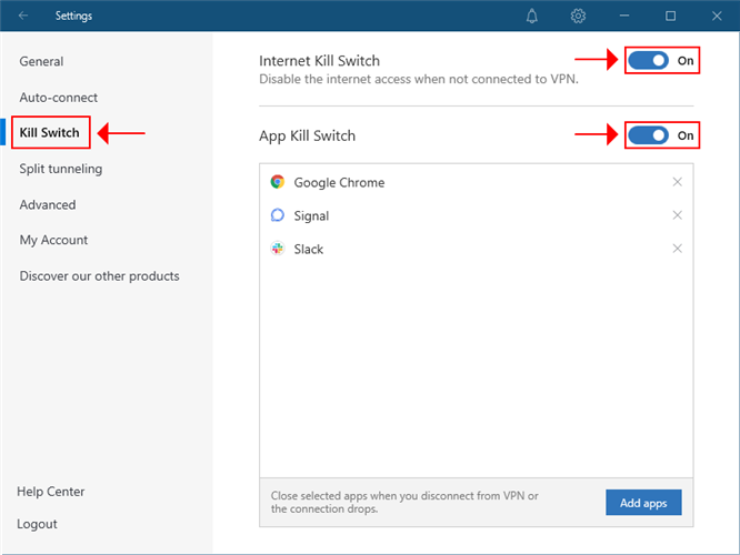 - Go to the Kill Switch settings.