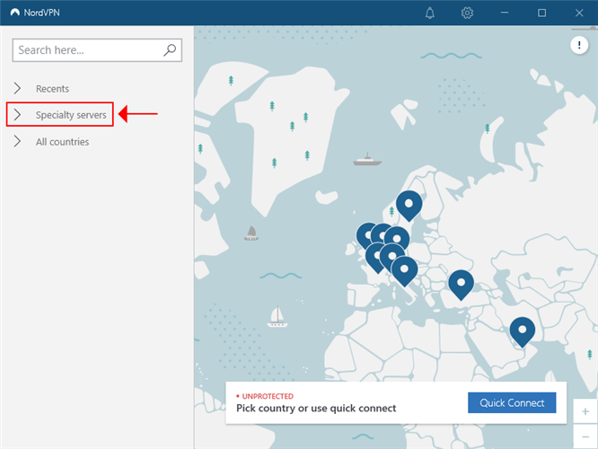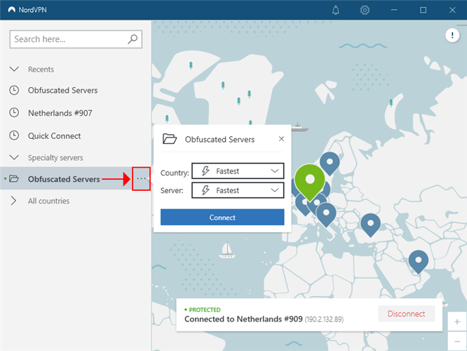 - Alternatively, click the … button to choose a specific country and server