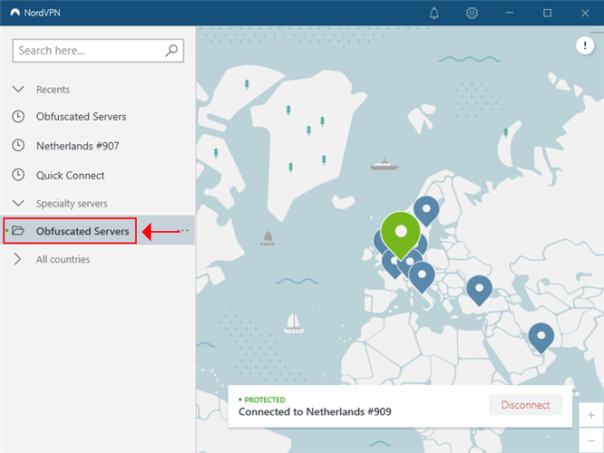 - Click Obfuscated Servers to connect to the nearest obfuscated server, depending on your location