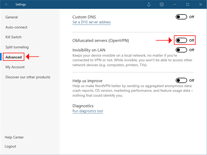 - Go to Advanced and turn on Obfuscated servers (OpenVPN)