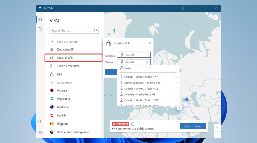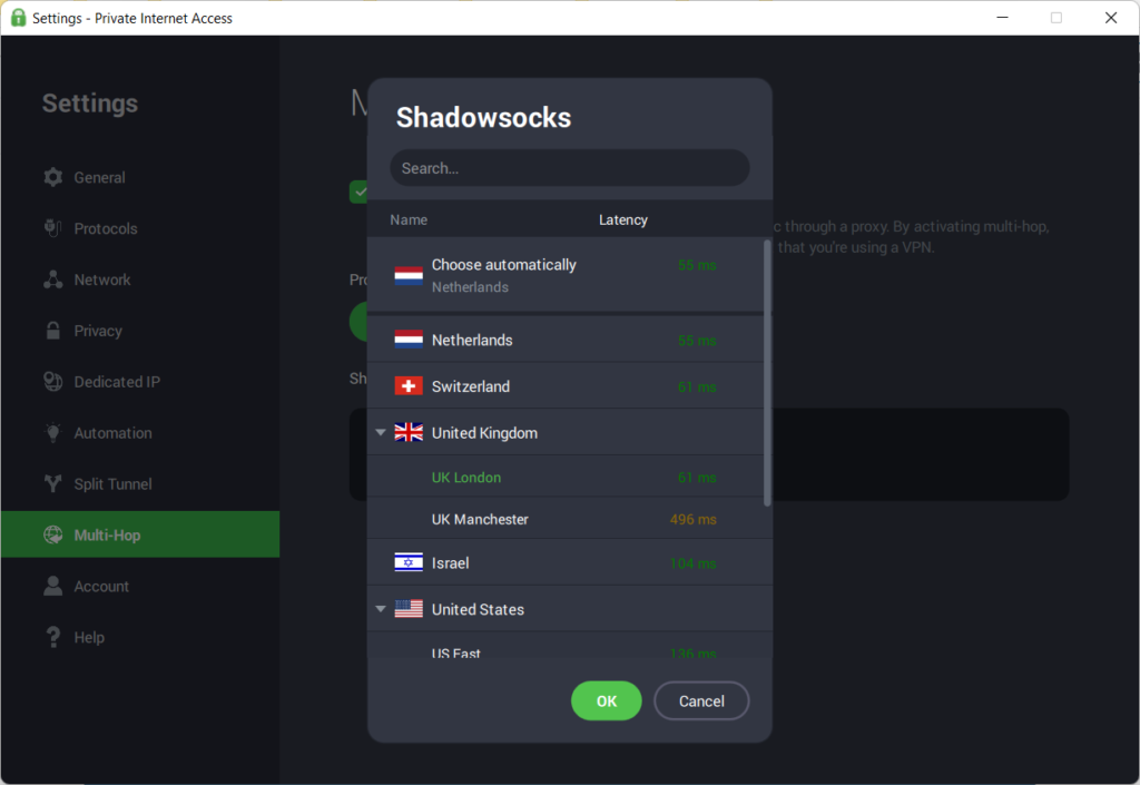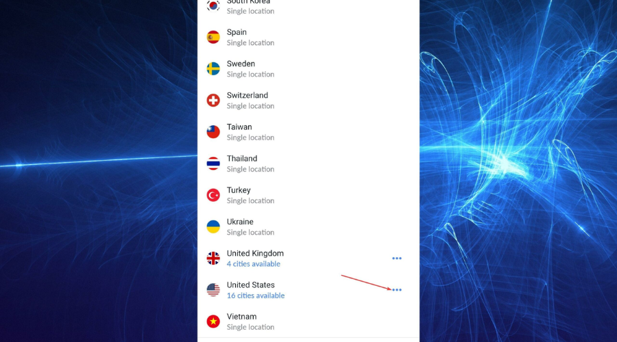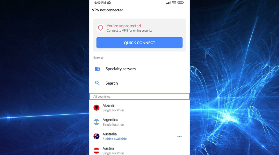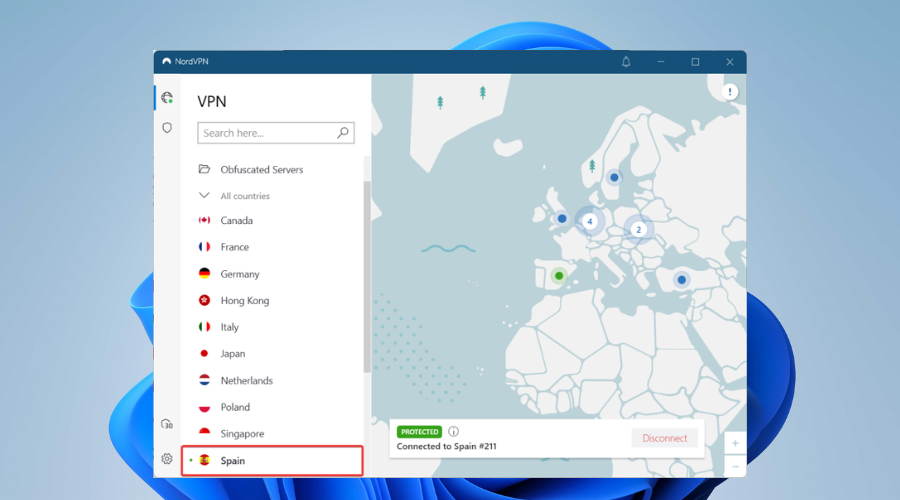 6. Select a VPN server location in one of those countries.