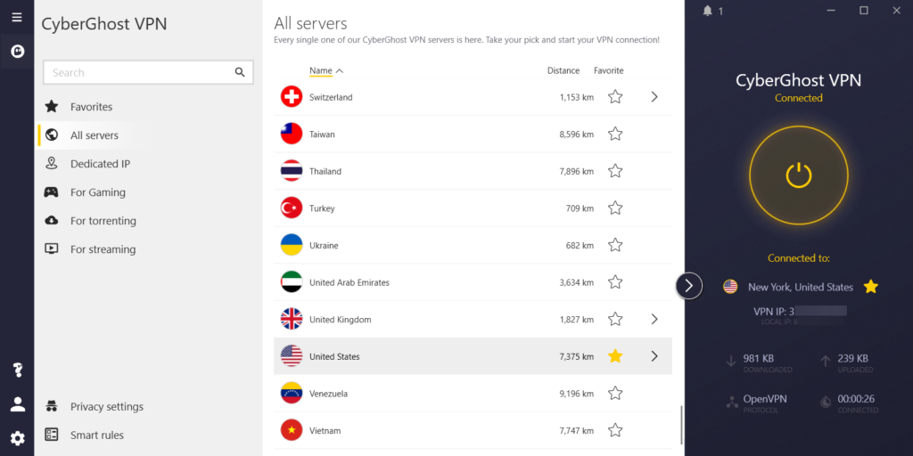 For an extra fee, you can gain access to CyberGhost’s NoSpy servers, which are all located in Romania and independently operated at the highest security standards.