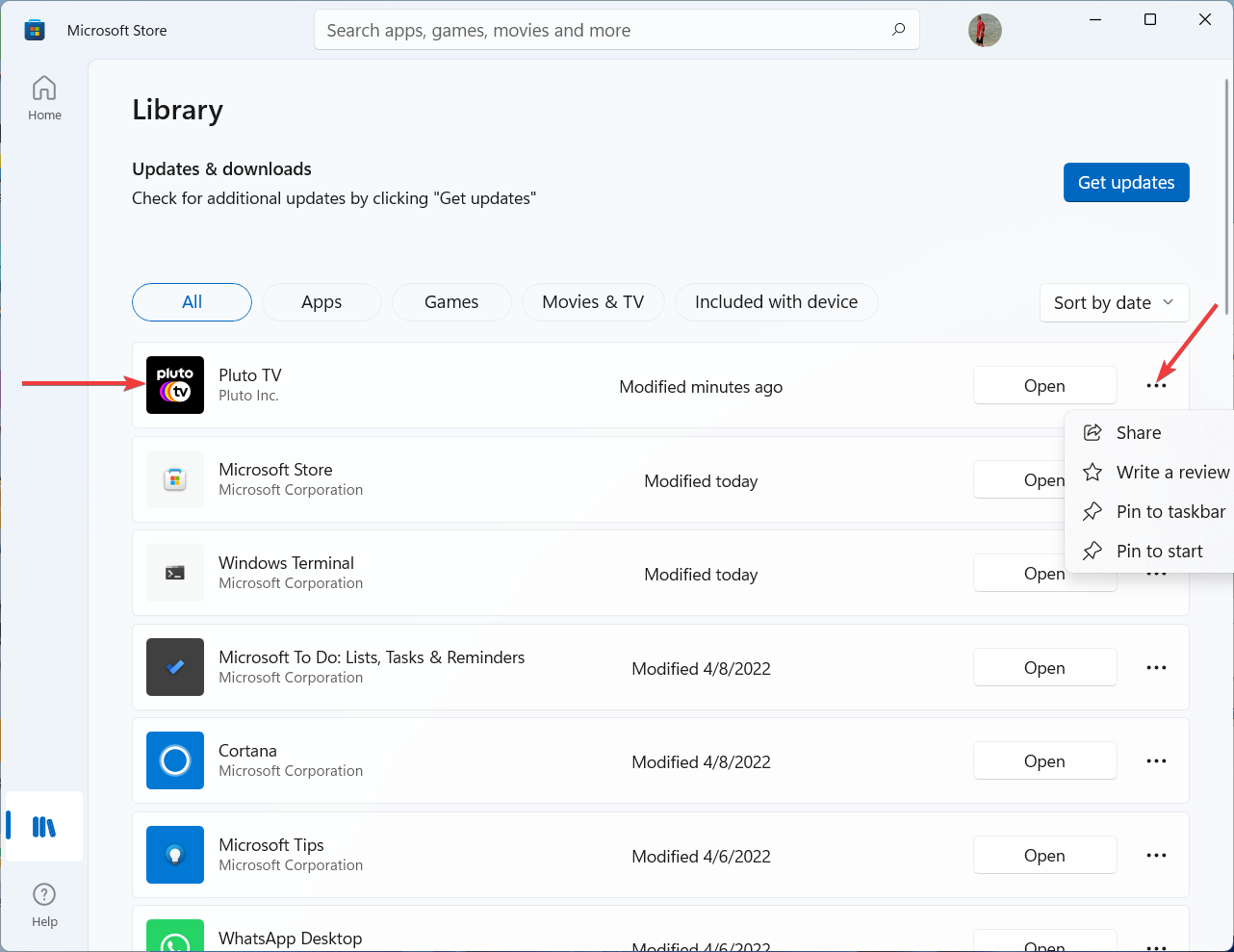 10. If you want to locate Pluto TV in the Microsoft Store, go to the Library first.