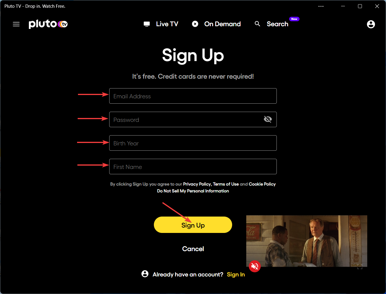 7. Enter the required info to create an account, then click on Sign Up.