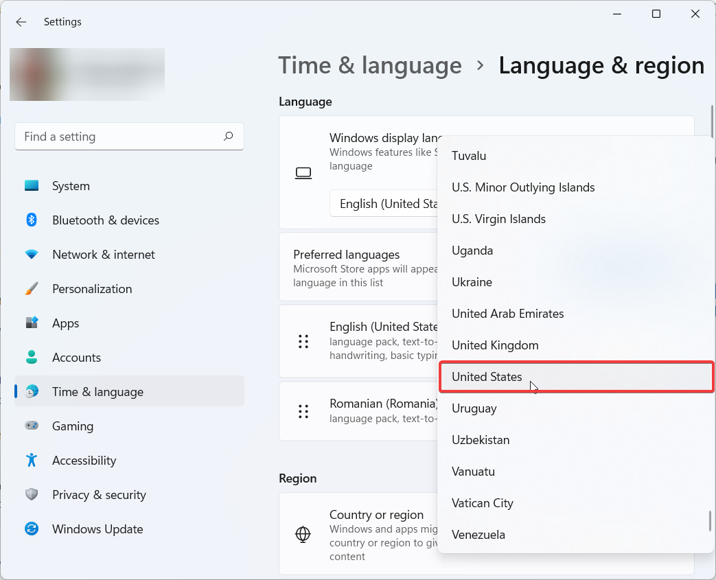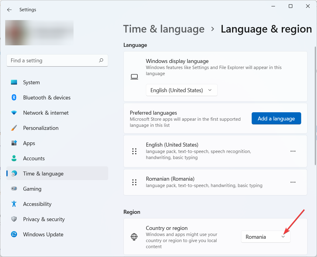 2. Go to Time & language, then click on Language & region.