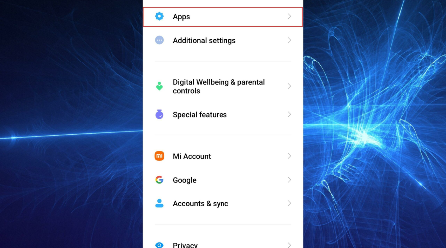 1. Open Settings on your Android device, then go to Apps.