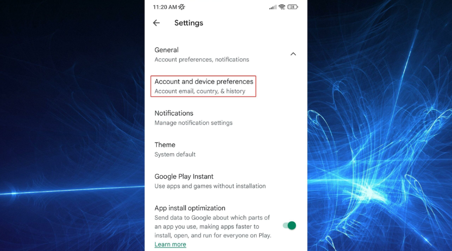 4. Tap on Account and device preferences.