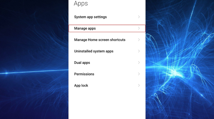 2. Tap on Manage apps.