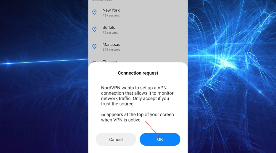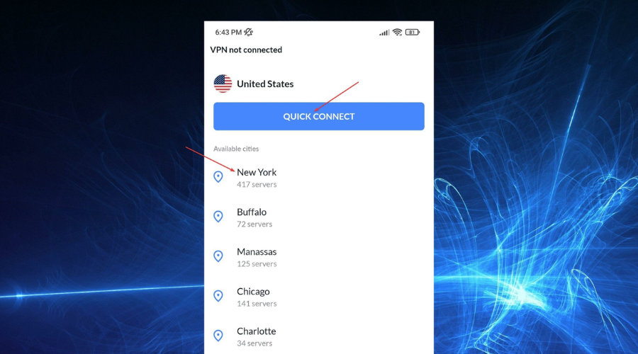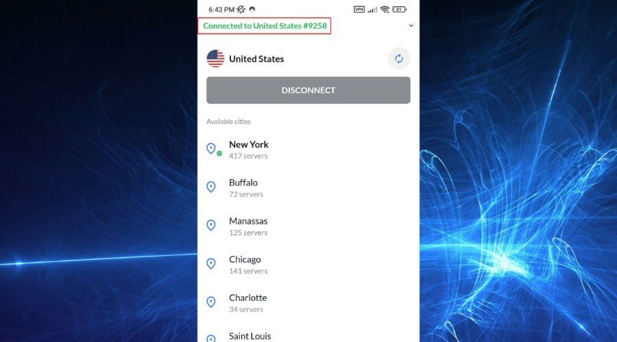 7. Connect to a VPN server in the chosen location.