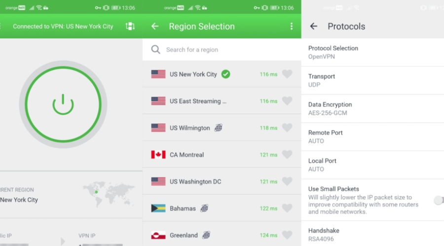 If you need the utmost privacy and security, PIA will guarantee them with the help of AES-128 (GCM) or AES-256 (GCM) military-grade encryption.