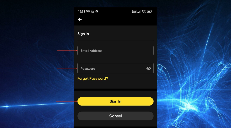 9. Enter your account credentials, then tap on Sign In.