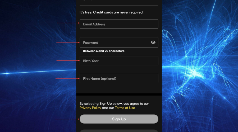 8. Enter the required info to create an account, then tap on Sign Up.