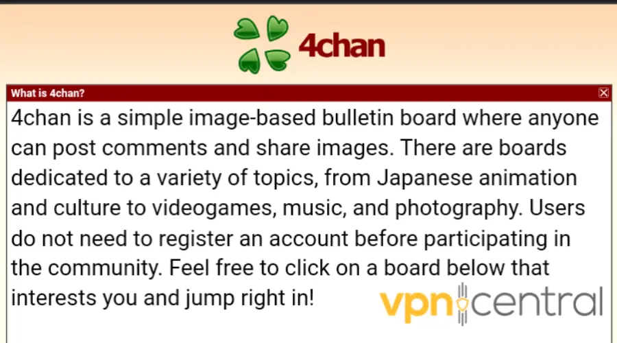6. Try accessing the blocked website or platform again. We tried accessing 4chan from several servers and locations and it worked perfectly. No error in sight.