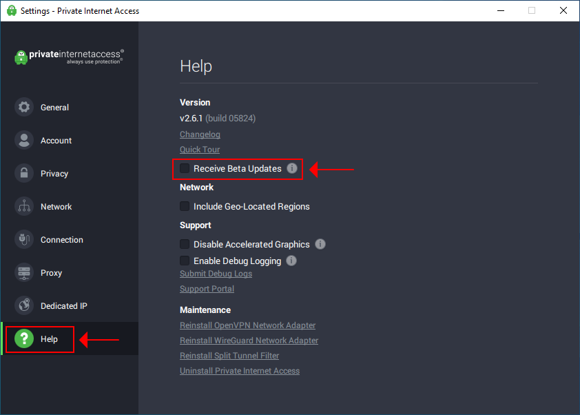 On the other hand, we don’t recommend joining the beta development stage. Although it allows you to test cutting-edge technology used by the VPN service provider, it doesn’t guarantee that Private Internet Access works correctly.