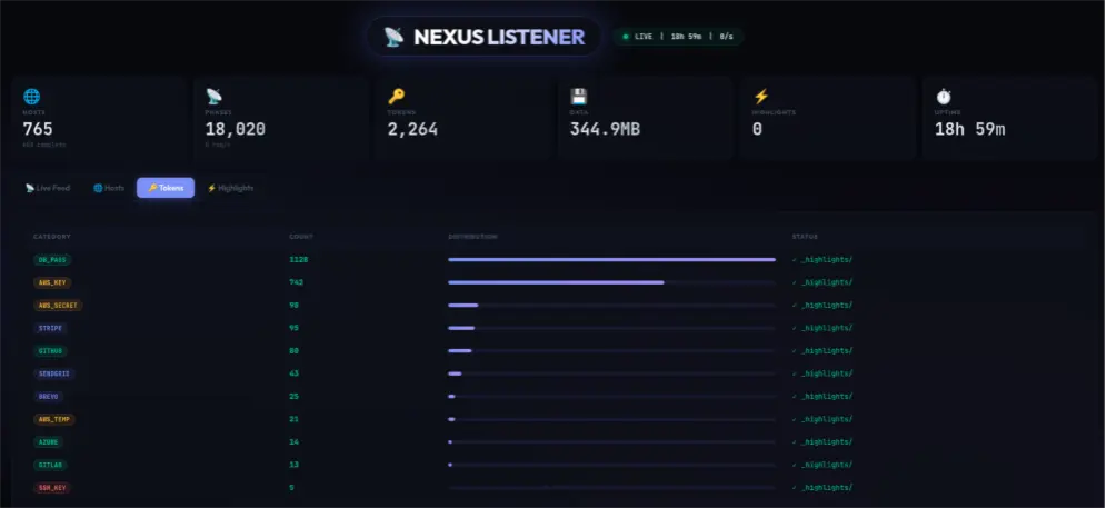 According to Cisco Talos, UAT-10608 used a custom command-and-control platform called NEXUS Listener to manage the flood of stolen data. The platform gave operators a web dashboard where they could browse compromised victims, sort credentials by category, review collection phases, and see which targets yielded the most valuable secrets.
