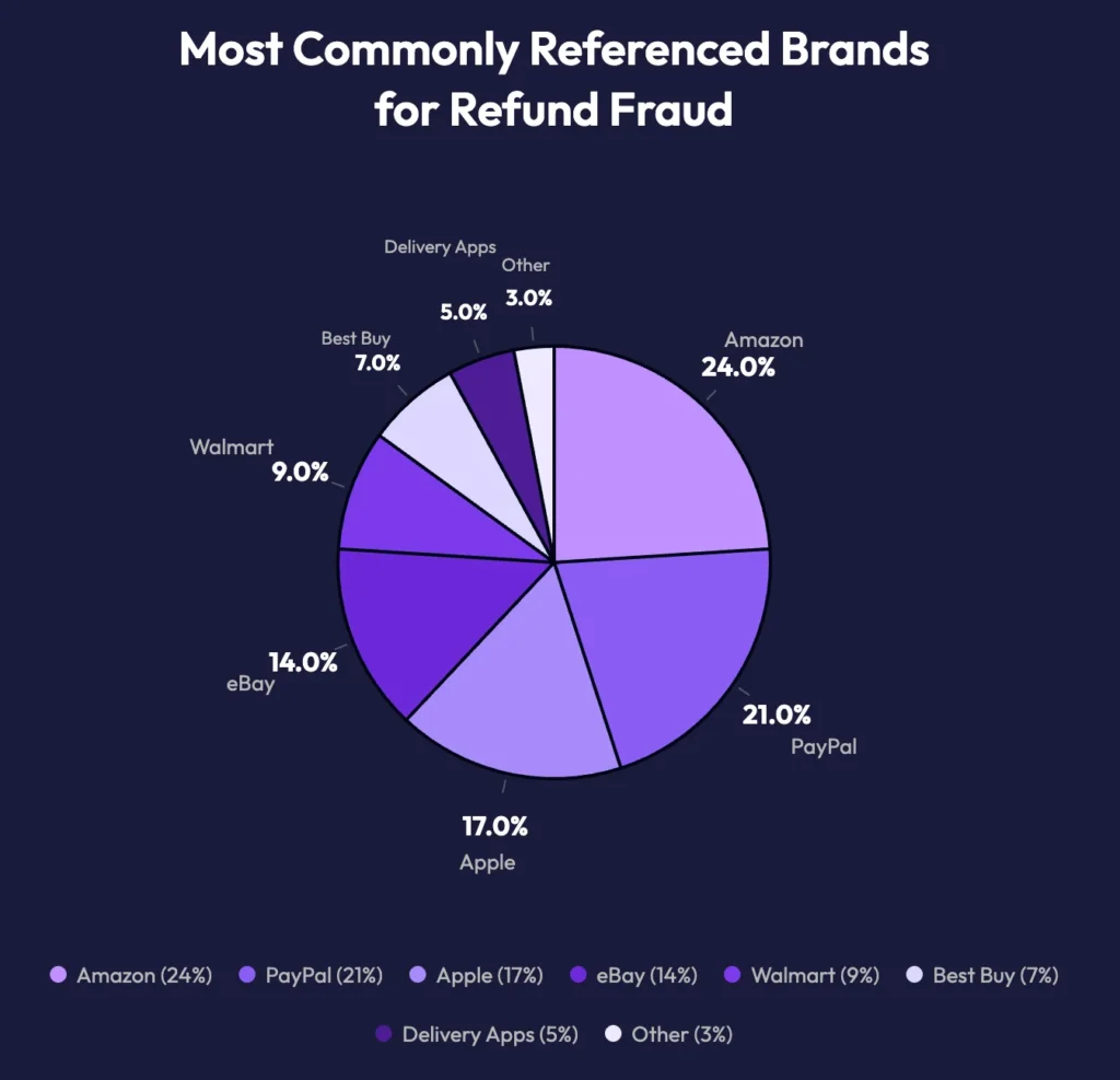 Flare said the most commonly referenced brands in its dataset included Amazon, PayPal, Apple, eBay, Walmart, Best Buy, delivery platforms, and digital payment services. Those names make sense because they combine high transaction volume with consumer-friendly policies and large refund pipelines. Fraud can blend into normal activity more easily when platforms process huge numbers of purchases and claims every day.