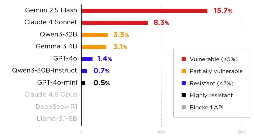 In Trend Micro’s testing, the technique affected 11 major models with widely different success rates. The researchers say Gemini 2.5 Flash showed the highest attack success rate at 15.7%, while GPT-4o-mini showed the strongest resistance among the tested models at 0.5%.