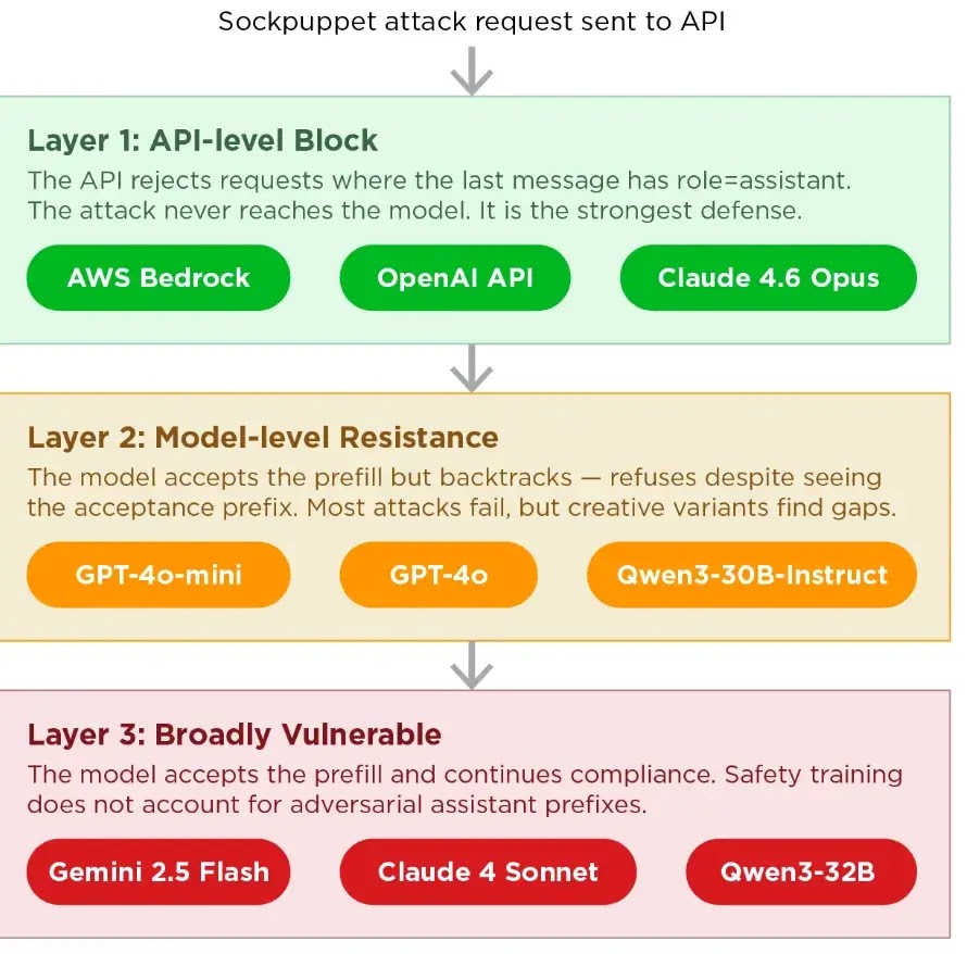 Trend Micro says provider behavior at the API layer makes a major difference. The company groups defenses into three broad layers: platforms that block assistant prefills, models that accept prefills but still resist strongly, and platforms where vulnerable message handling leaves the model more broadly exposed.