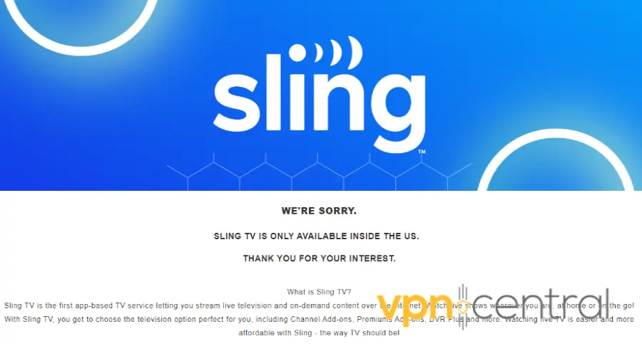 - Sling TV blacklisted your VPN server: the website uses technology to stop viewers from trying to stream content from other countries