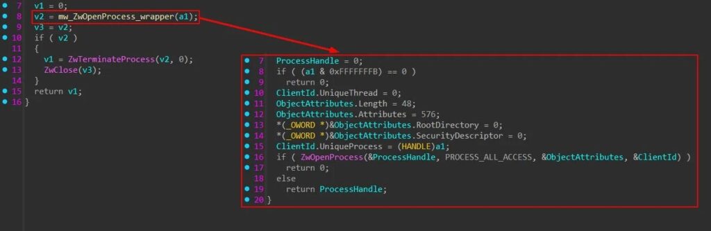 The final payload, called HwAudKiller by Huntress, drops a Huawei audio driver to disk and registers it as a kernel service. Because the driver carries a valid Huawei signature, Windows loads it, and the malware then uses it to terminate targeted security processes from kernel mode. Huntress said the tool loops through running processes and sends matching IDs to the driver, which then kills them with kernel privileges.