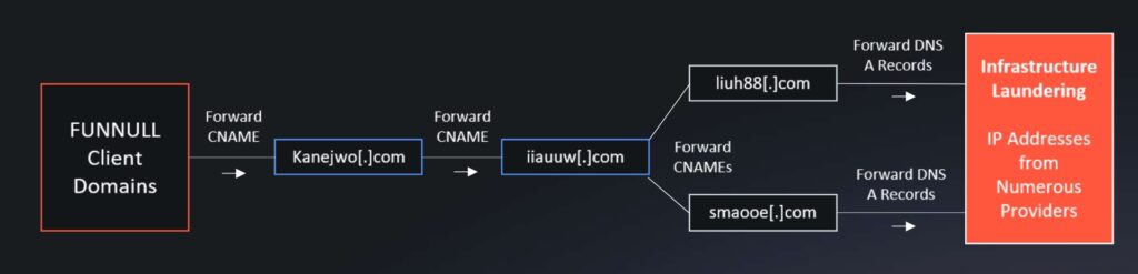Core infrastructureHeavy reliance on FUNNULL-linked deliveryMore distributed cloud and DNS-based concealment