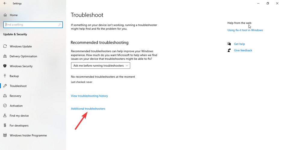 - Click Troubleshooting