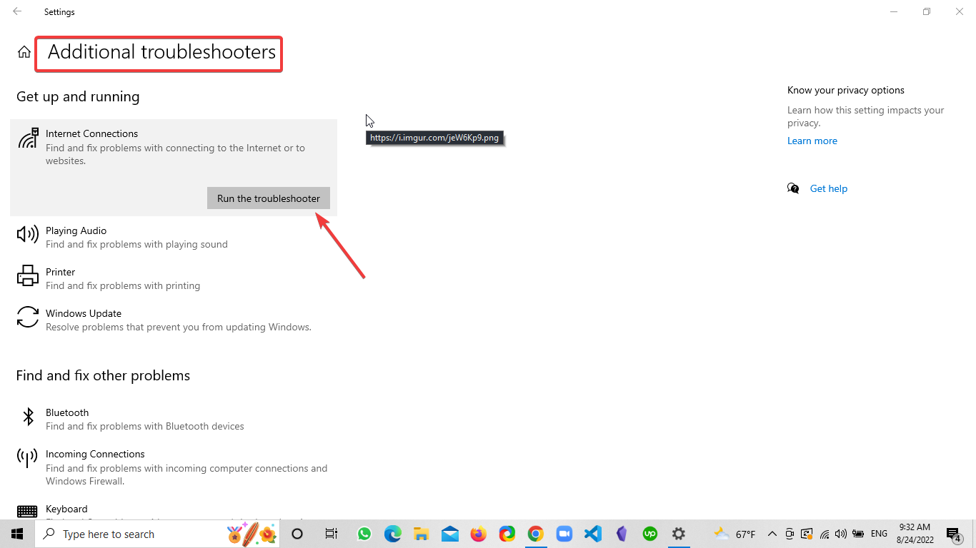 - Click Additional troubleshooters > Internet connections > right click and Run the troubleshooter
