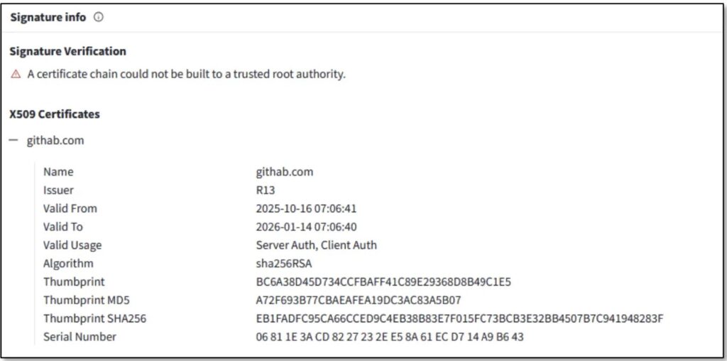 The campaign also used fake code-signing details to make malicious files look more trustworthy. One version reportedly impersonated GitHub with the name githab.com, while another impersonated grow.com.
