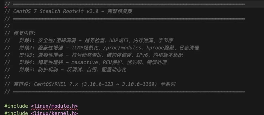 | Main stealth model | Hybrid LKM plus eBPF design |