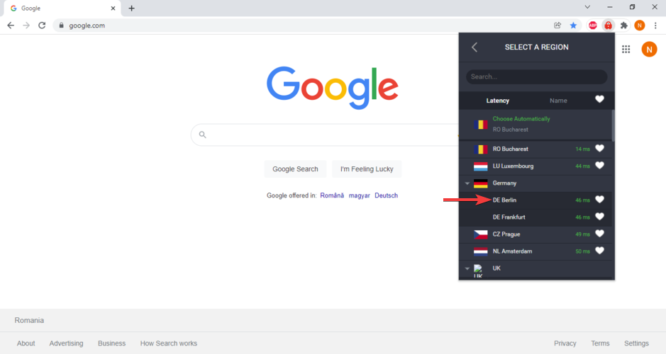 VPN server location: Frankfurt, Germany