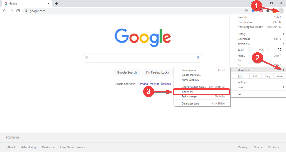 - Go to the menu, click on More tools, then click on Extensions.