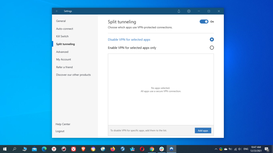 You might be tempted to think that this feature is similar to split tunneling or the bypass list; however, it is not since it never lets parts of your browser traffic unprotected.