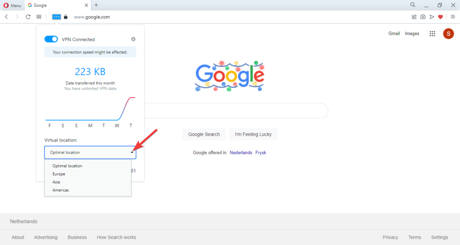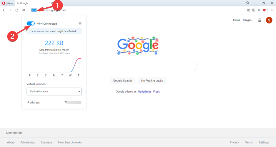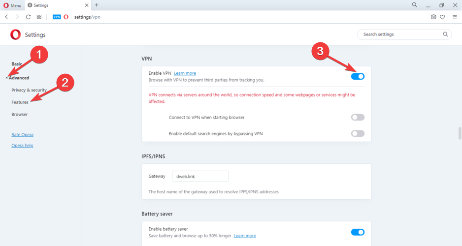 Enable the built-in VPN in Opera