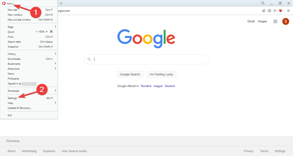 - Launch Opera, go to the Menu and click on Settings.