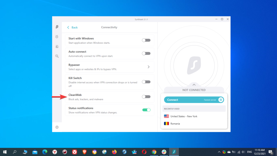 Some VPN services also include an ad and malware blocker feature which is found under different names. For example, PIA MACE, NordVPN CyberSec, and CleanWeb are the names for the ad blockers offered by Private Internet Access, NordVPN, and Surfshark, respectively.